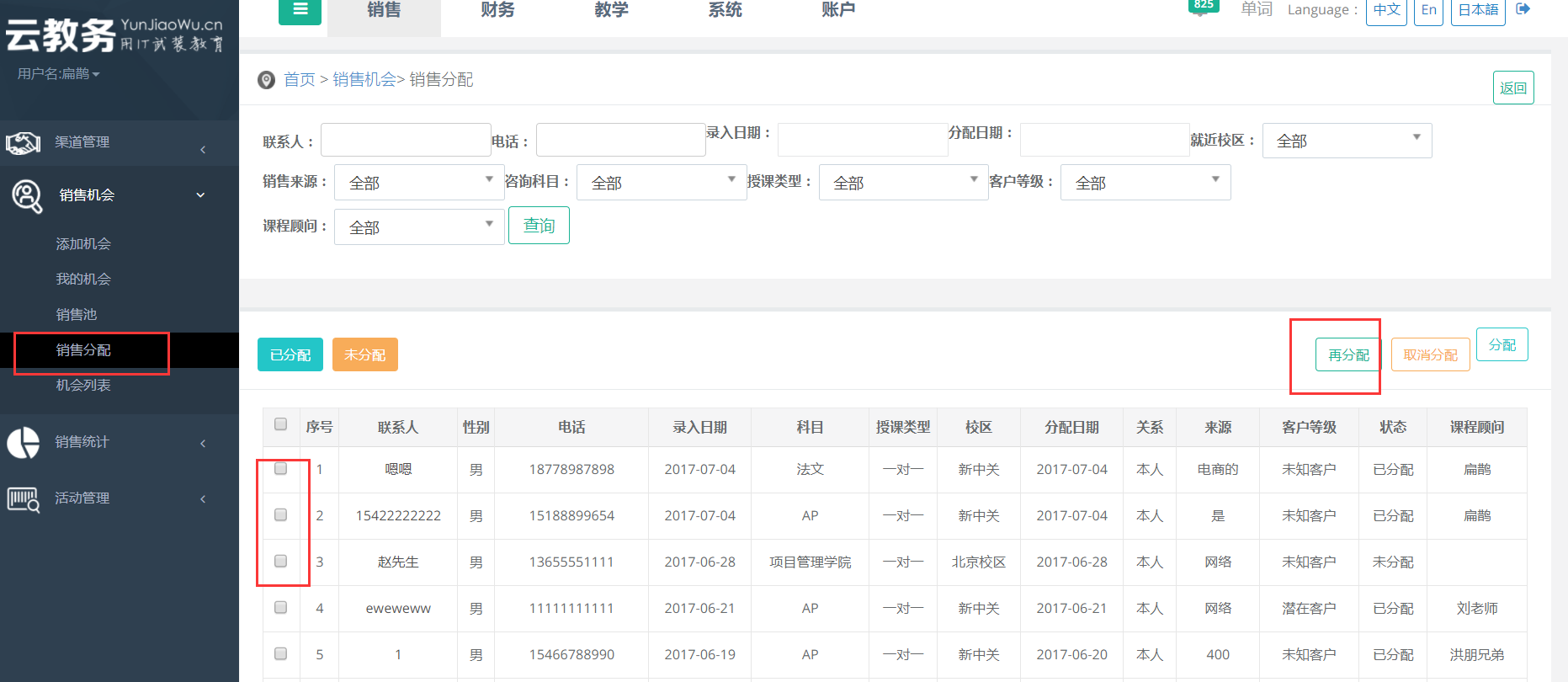 云教务系统销售机会模块里有销售池选项,这里面的机会是可以再次生成为‘’销售机会”的。方法有两个: